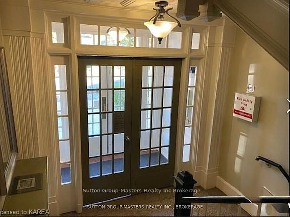 Welcome to Kingston's finest! This stunning 2-bedroom executive condo is nestled in the historic Annandale building, surrounded by majestic churches, charming B&Bs, and breathtaking waterfront strolls. Prime Location: Situated in downtown Kingston, enjoy effortless access to Queens University, KGH, and Hotel Dieu Hospitals. Walk to restaurants, concerts, and the scenic waterfront for an evening of relaxation and entertainment. Spoil yourself with Luxury & Comfort: Spacious open-concept professionally designed by a local Kingston fine home specialist Reid & Siemonsen who saved features such glass door knobs and crown molding. Gorgeous living room windows boasting picturesque views. Modern kitchen with stunning cabinetry & sleek quartz countertops. Quality bamboo flooring - a delight for your feet! and & soaring tall ceilings enhance the elegance of the space. 2 bedrooms with ample closet space and bright windows. Beautifully renovated spa-like bathroom featuring a glass shower and tranquil finishes. In unit washer/dryer for ultimate convenience. Loose yourself in the Historic Charm & Amenities: Wide hallways adorned with luxurious carpets for a serene ambiance. Elevator, courtyard with BBQ, and bike storage and additional locker. Best parking spot in the building near the back door. Well-maintained lush gardens for a peaceful retreat Embrace the vibrant lifestyle Kingston offers, all while living in a mature, historic area filled with architectural beauty and green spaces. Move into one of Kingston's hidden gems today!