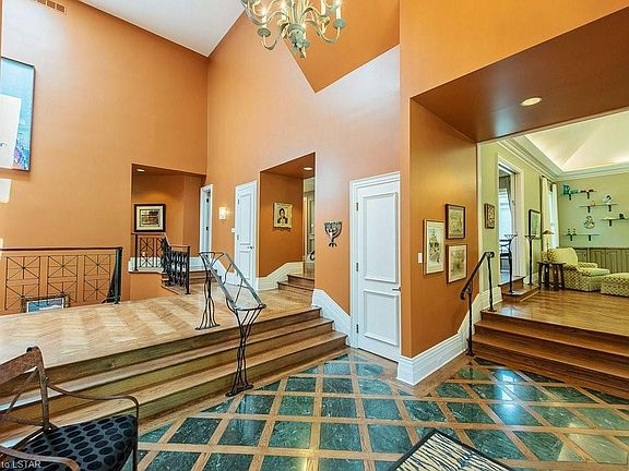 Designed by renowned London builder Bernie Zaifman for his family, the foyer of this home greets you with soaring ceilings capped with skylights and a marble floor with wood inlays. Finely finished but comfortable, this is a home to be lived in. Custom details-- countertops, herringbone oak floors, iron bannister, built-in shelving and storage--are sourced from local artisans. Bernie believed "you can't have too much height" and it shows: High ceilings and tall windows provide a sense of space throughout but rooms remain cozy places, inviting family and friends to gather. The gourmet kitchen is filled with practical touches, including a large pantry and eating area for informal meals. The master offers an exquisite ensuite with radiant heated flooring and a cavernous shower, plus a walk-in closet with direct access to the home gym on the lower level. There are enough features for 10 listings: Schedule a private showing to understand what makes this house a home.