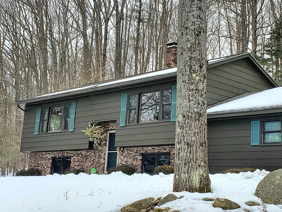 Well cared for property! Located close to town with 2.5 surveyed acres. This home has been owned and loved since 1986. Very clean! Spacious kitchen with island and tile floors. The dining room has natural light and hardwood floors. There's a large living room, a heated sunroom and a family room that give this home so much living area. The first floor has a bedroom with a half bath, plus a full bath. The lower level has another bedroom with a 3/4 bath. Enjoy the pellet stove in the family room. Easy entry from the attached garage into the family room or the kitchen. Additional storage for tractors and more in the detached garage/shed, plus a carport. Sitting up on a hill with wooded surroundings and winter views of the mountains. Delayed showings until 3/16/2023, Open House Saturday March 18th, 9 am to 11 am