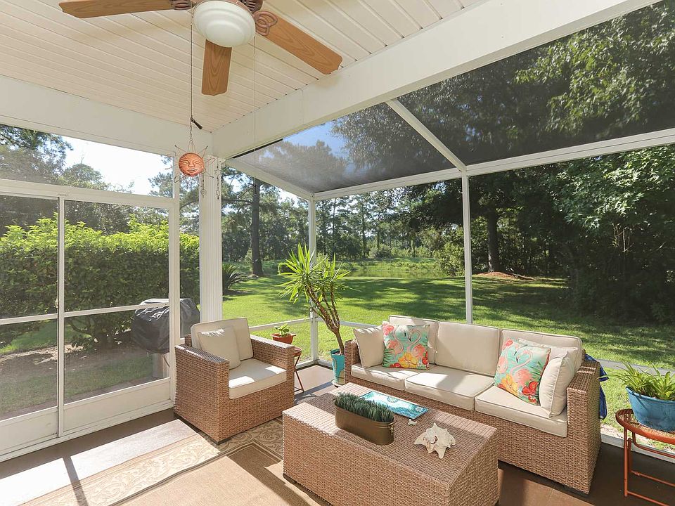This is a special home! Situated on one of the communities largest homesites, enjoy lagoon & wooded views from the large screened porch with extended lanai. The bright and open 3 bd / 2ba floor plan is move in ready! Upon entering the home one will notice the high ceilings and upgraded trim package. The kitchen features tile floors, custom tile backsplash, maple cabinets, recessed lights, corian countertops and a skylight. Enjoy the gas fireplace and built-in cabinets in the family room featuring hardwood floors. New irrigation system & hot water tank, newer HVAC.