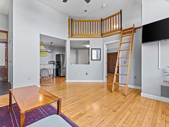 Unique, charming and historic 1 bedroom, 1 bathroom plus loft condo in Winooski! 1938 original schoolhouse was converted to condominiums maintaining the original vintage details from hardware and woodwork, to the old slate chalkboards used as entry flooring. This top floor unit has 12 foot vaulted ceilings and gorgeous hardwoods. Oversized windows allow in tons of natural light. Spacious kitchen with granite countertops and space for a small table. Primary bedroom has a wall of vanishing closets, giving you a rare glimpse of true craftsmanship. Loft space is available with access by ladder, and provides a cool space for living or storage (loft space square footage is not included in the total square footage listed). On site laundry available as well as an indoor basketball court and gym. Association has garden space and an off-street private parking lot with ample guest parking. Rare opportunity to own a piece of history. Walking distance to Winooski circle and River Walk, minutes to Burlington.