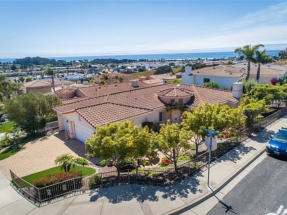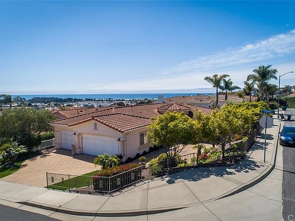 An elegant single level residence located in a neighborhood of picturesque homes and speaks of the pride of ownership. This 3 bedroom, 2.5 bath luxury home offers just under 2000 sq. ft. of living space and includes an open floor-plan, formal dining area, wood floors, spacious laundry room, plantation shutters and gorgeous ocean views from the peaceful back patio. The large friendly kitchen offers a skylight, an abundance of counter space, electric cooktop, dishwasher, built in range and microwave. You will enjoy the private master suite with double sinks, oversized walk in cedar lined closet, large jacuzzi tub and separate shower. The sliding glass doors open your bedroom suite to the patio where you will be sure to enjoy a glass of wine with views of the ocean. Also featured is lighted niches to highlight your special pieces, a built in entertainment center, cozy fireplace in the living room and a 3 car garage with built in storage cabinets. You're surrounded by a beautifully, low maintenance landscaped yard, that includes a decorative design in entry pavers and artificial turf in the front yard. Located on a corner lot, this spacious property has a private and serene feel. Close proximity to the ocean, shops, restaurants and schools. Contact your agent today to preview this special property.