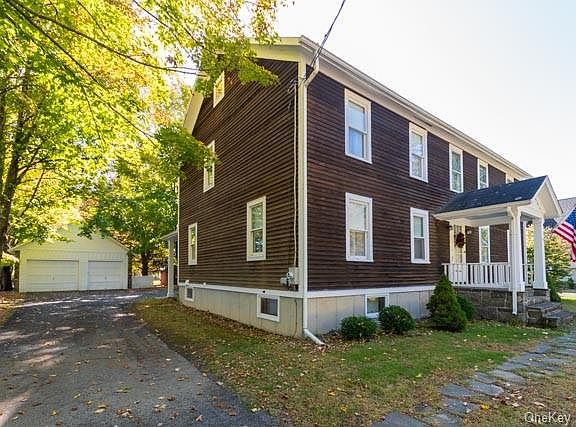 Classic Village Colonial in desirable Village of Washingtonville on over half an acre of property. Well maintained home that shows the care and love the owners have put into this home. Beautiful hardwood floors through most of the home. Country kitchen with large island will be the center of much activity. Formal Dining Room leads into the large Living Room with brick wood burning fireplace. Upstairs is a Large Master Suite with walk in closet and full bath, do not miss the pocket doors. Three additional good-sized Bedrooms with high ceilings, hardwood floors under carpet and cedar lined closet. Do not miss the walk-up attic with potential for additional living space. Outside you have a large detached 2 Car Garage and Workshop and plenty of flat open space for all outdoor activities.