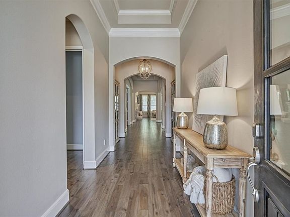 OFFICIAL LISTING - THE KINK TEAM - www.TheKinkTeam.com - 281.364.4828 SINGLE STORY charmer in Liberty Branch. The beautiful front porch welcomes you into this home. Rich hardwood floors, architectural wood ceiling beams & moldings give this home a luxurious feel. Kitchen with tall cabinetry, stainless steel appliances, stainless farmhouse sink, granite countertops and large island breakfast bar. Family room with floor to ceiling stone freplace. Breakfast room has office space and is surrounded by windows. Large formal dining with French Doors opening to the side patio. Study and wine room with beverage cooler. Serence master retreat with tres ceiling and bay window sitting area. Two additonal bedrooms each with private bath. Tiled coverd patio with built in grill perfect for entertaining and enjoying the beautiful landscape. Ring doorbell. Three car garage. Enjoy all that Liberty Branch community has to offer from parks, trails to neighborhood events.
