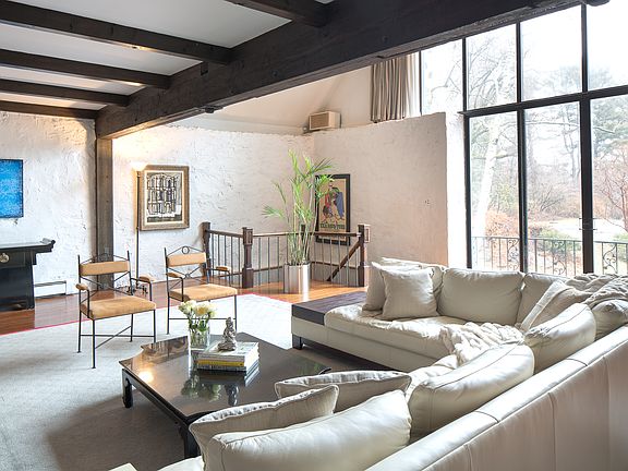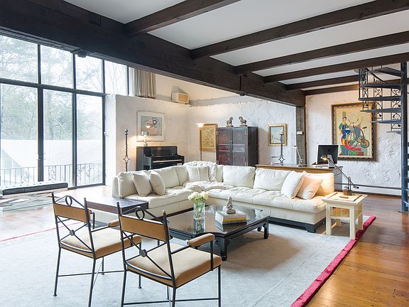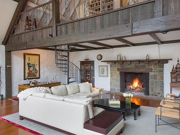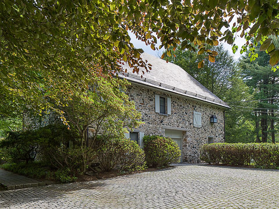 Picturesque, private & originally built as a stone barn, this idyllic country residence with its European countryside charm still retains its historic period flavor and fine craftsmanship including 24" thick stone walls, rough-hewn beams & antique wide-board floors. The soaring Great Room with wide plank floors, original fireplace & timbers is the focal point of this home with an expansive living and entertaining space featuring a bank of stacked 8' windows offering views of gardens. Circular stairs to the sitting room/library is perfect for a quiet moment. Family quarters flow from the Great Room to four bedrooms and three full baths. Stairs lead to another bedroom with a full bath & unfinished area with original beams and a picture window. The main level offers a French-style brick & marble kitchen with breakfast area, dining room and family room with media cabinetry. The original blacksmith shop with vaulted ceiling is now a retro-chic pool house with kitchen and a full bath/cabana. A Har-Tru tennis court and pool are surrounded in specimen landscaping and create the perfect setting for entertaining.