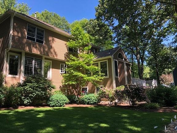 This is the perfect opportunity to own one of the model homes in Wickford Highlands where nothing was spared and built by a reputable South County builder. A modern colonial with two story foyer filled with natural sunlight throughout. Designated home office with all custom built ins and granite desktop. Gorgeous cathedral ceilings and stone fireplace in great room surrounded by custom wood crafted built-ins and mantle. Formal dining room/sun room with second fireplace and glass door leading to an oversized deck and natural gas grill hookup, ideal for entertaining inside and out. Beautiful chef's kitchen with 36" range with hood, top notch appliances, a wall of pantry closets, tons of storage and a mud room as you enter from the garage, the perfect drop spot. Main bedroom has gigantic easy accessible closets, full bath with soaring ceiling, soaking tub and glass enclosed tiled shower. Three additional bedrooms and full bath complete the second story. Finished lower level with wet bar, recreation room, common area, full bath, laundry room and easy access walkout to the perennial gardens, manicured 1/2 acre yard, underground irrigation and an invisible pet fence.