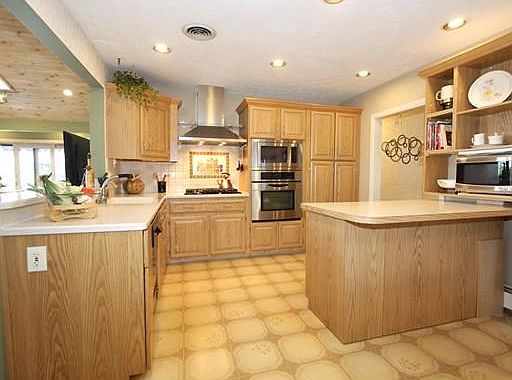 - Kit Dscrp: Flooring - Vinyl, Main Level, Dining Area, Countertops - Stone/Granite/Solid, Breakfast Bar / Nook, Kitchen Island, Stainless Steel Appliances, Open Floor Plan, Recessed Lighting, Gas Stove, Peninsula, Lighting - Overhead