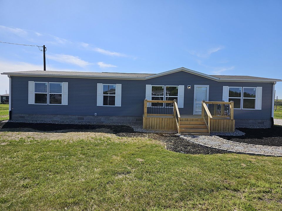 Welcome to 67 Wolf Bend in East Bernstadt, Kentucky! This charming 4 bedroom 2 bath modular home boasts a beautiful kitchen complete with a refrigerator, dishwasher, and range, alongside stunning white cabinetry and lovely LVT flooring throughout. The generous bedrooms and spacious owner's suite await, with the owner's bathroom featuring a luxurious walk-in shower and a large sunken tub for your relaxation. Step outside to enjoy the inviting front porch or the exceptionally large back deck, perfect for entertaining or simply soaking up the serene country atmosphere surroundings. Situated on a .51-acre lot, this modular home rests on a concrete block foundation and is eligible for conventional, Rural, FHA, and VA loans—making it a dream for many buyers. Adding to its appeal, the home comes with a one-year warranty for your peace of mind. With 1590 square feet of beautifully finished living space, this residence is ready to welcome you home. Don't miss the chance to explore all that this property has to offer—make arrangements to see it today!