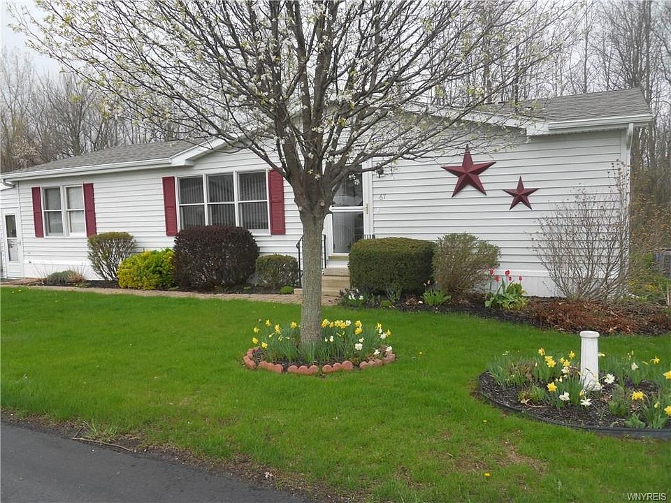 Great retirement home- 55 plus community-1300 sq ft 2 bedroom, two bath Ranch-formal dining room, eat in kitchen, spacious three season room backs to wooded area-well landscaped yard-attached garage-public water. Great Community