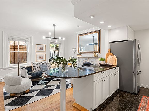 Garden level one bedroom with parking on tree lined Worcester Street. Features of this delightful home include an open living, dining and kitchen with hardwood floors, large windows, a beautiful fireplace mantle, and direct access to a large, fenced-in brick patio. The open kitchen has a brand new stainless steel appliance package that includes a double door refrigerator, electric range, dishwasher and microwave, all with a five year warranty from Yale Appliance. Separate dining area easily fits a round table for four. The good sized bedroom fits a king or queen comfortably, while still leaving room for a WFH area. Side by side closets have been customized to maximize storage. Additional features of this home include a brand new in-unit washer/dryer, one deeded direct access parking space, excellent closet space and professional management. Convenient to Northeastern, BMC, MBTA bus and trains, as well as several amazing restaurants including El Centro, The Shawmut Inn, Toro, SRV + MIDA