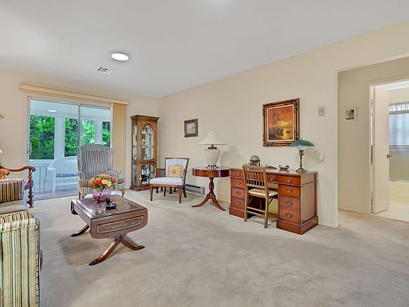 Lovingly maintained Marlowe model features 2 master bedroom suites each with dressing area, two double closets and en suite full bath. Spacious living room with adjoining enclosed sun porch leads to an outdoor patio. Eat-in kitchen with large peninsula also accommodates a breakfast nook. There is a generous dining room with bay window plus a den/office near front entrance. Other highlights include a large laundry room with direct access to garage, plenty of storage, replacement windows, tubular skylights and a corner lot that backs up to the woods for privacy. Participate in the many activities at the clubhouse and enjoy the outdoor pool, 9-Hole Golf Course, Fitness Center, Bocce Ball, Tennis and Shuffleboard all in a scenic setting. Close proximity to shopping, restaurants and beaches.
