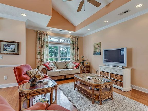 Nestled in the beauty of North Myrtle Beach..a short golf cart drive to the Ocean, you’ll find this desirable cottage. A primary home, vacation home-- you decide. Or perhaps you’d prefer to purchase now, put on a rental program and retire later. This home has all the “I wants” and “I needs”! Fully furnished, this four bedroom, three bath home has decorator touches throughout. Enter through the Foyer downstairs or an exceptional closed in garage with parking inside for a golf cart and two vehicles. Parking outside is for two additional cars. Downstairs you’ll find two bedrooms for guests or family with a bath and large shower for your convenience. A laundry room with washer/dryer is also housed downstairs. Sliders from a downstairs bedroom access a small patio with pool just steps away. Ascending the stairs, you’ll be amazed at the size of the open living area with beautiful hard wood floors! Vaulted ceilings and lots of windows surround the large, stainless steel kitchen with corian countertops and breakfast bar. Combination living-dining room are perfect for gathering family and friends and steps away from the screened porch with views of the lake and swimming pool. The Master Bedroom suite, with a bay window is perfect for a relaxing lounge, and large enough for your King-Sized furniture and new carpet. A large,walk-in Closet and bath with shower complete this private area. And yes, there is another bedroom and full bath across from the Master Bedroom…four bedrooms, three baths…WOW!