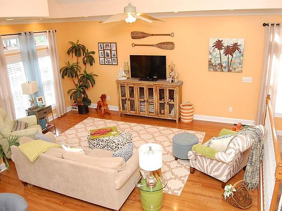 Like new, very well maintained 4BR cottage located in the ever popular Tilghman Beach section of NMB in the Cottages at Tilghman Beach. Home is being sold furnished with updated furnishings. This spacious, well designed layout features 2 bedrooms and a full bath on the ground level, with the living area, kitchen, master and secondary bedroom upstairs. Home features dramatic vaulted ceilings, new hardwood floors, new paint, corian countertops, a 2 car garage, screened porch, finished garage, tiled back patio, and so much more all in location that is just a golf cart ride to all the area has to offer. This home features tranquil water views and very easy access to the community pool and walkways. You'll definitely enjoy the views and the peaceful setting this home affords.