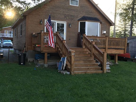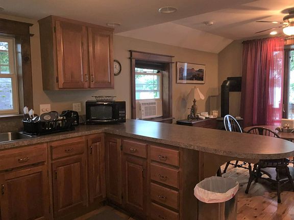 SALEM LAKE - The sunsets from this waterfront cabin will blow you away! This updated year-round cabin features 2 bedrooms and a bonus room, full bathroom with washer/dryer, kitchen, and a living/dining area with spectacular view of the lake. Paved driveway, open & level lot, back deck, fire pit, and 50 feet right on the water! This camp has been a very successful Airbnb property during the summer but can function in the winter for snowmobilers (right on the trail!) or skiers. Comes fully furnished and there's even an aluminum boat with motor included as well. Small shed for your water & lawn toys. Lake access is sandy & shallow and great for kids or pets. Completely turn-key and ready to enjoy or rent. Waterfront properties are hard to find so don't let this one get away! Ask your agent for video links.
