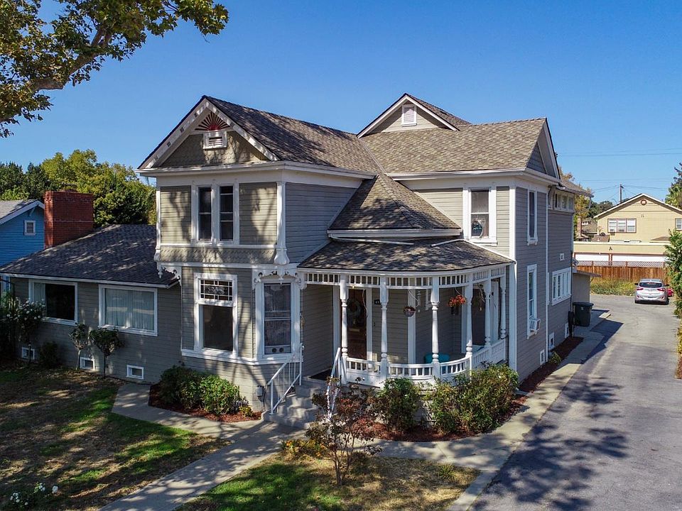 Beautiful Victorian home in the downtown Hollister area, The a space to live and play in this move-in ready home! This home features high ceilings and lots of natural light an inviting front porch that welcomes you home. Kitchen and bathrooms were updated in the 1990s. 5 Bedroom 2 Bath Approx. 3108 SqFt of living space upstairs and downstairs. New Carpet in the family room, and upstairs bedroom. The plumbing all throughout the house was replaced with copper lines. Electrical panel box was replaced with the solar system was installed. The roof was replaced a new composition tile roof and new gutters in 2019. Lots of original hardwood flooring. Finished basement, Cold Storage room approx. 16x15 for food and wine. 3 Car detached garage and workshop. BBQ Area and private driveway to the rear of the property with gated alley access. The backyard BBQ area is covered with a wood burning BBQ Pit and outdoor dining area. Located in a quiet neighborhood, close to vineyards, parks & restaurants.