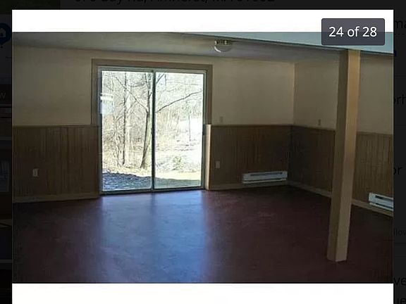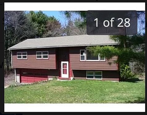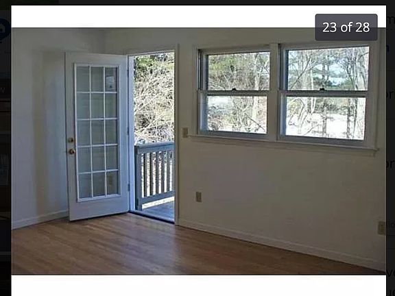 It features a large walk out basement, new kitchen appliances, an attached garage and laundry hook-ups. The living room is cozy and sunny. The master bedroom has a tiny balcony looking over a babbling brook and woods, as well as a small half-bath.