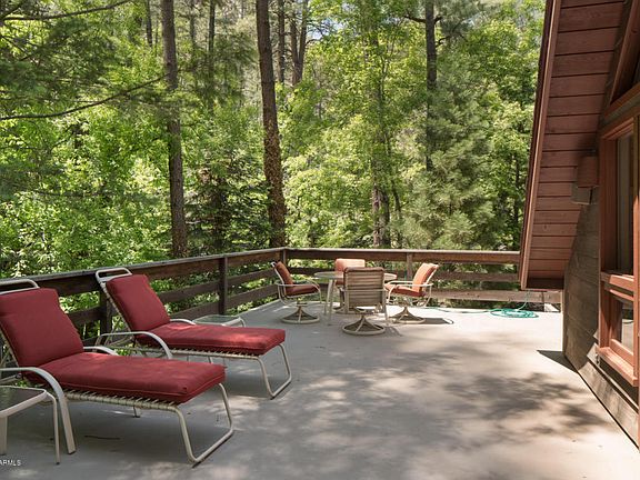 Fabulous Mountain Retreat nestled just steps from National Forest Hiking & the tumbling waters of Oak Creek! Resting beneath a canopy of tall pines & offering ample room for a family vacation home. Spacious island kitchen with gathering area, inviting great room with gorgeous floor to ceiling stone fireplace. Expansive windows throughout the home frame the spectacular forested setting & colors of the changing seasons. Master suite features a second fireplace and beautiful walnut parquet flooring. Third bedroom with vaulted ceilings could be a great den/family room. Be enveloped by the forest on the awesome upstairs deck; a perch among the Pines. Screened in Summer porch downstairs. Wonderful Pine Flats neighborhood enjoys a common park, community center & Holiday parade.