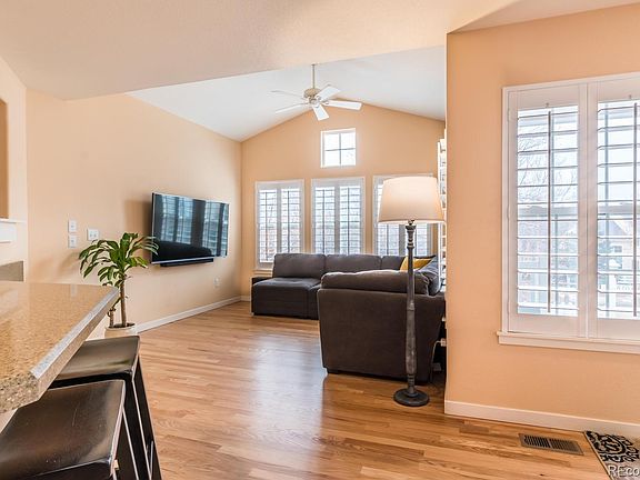 Sunny end unit townhome in Indian Peaks! Property faces greenbelt, and is away from busy road. Hardwood floors throughout main level were just refinished, and new carpet was installed upstairs. Shows great! Open kitchen with gas range, stainless steel appliances and kitchen bar. Versatile floor plan with vaulted ceilings, gas fireplace, and lots of windows. Finished basement with wet bar and private ¾ bath. Central air conditioning. Private and sunny patio area. Two car attached garage!