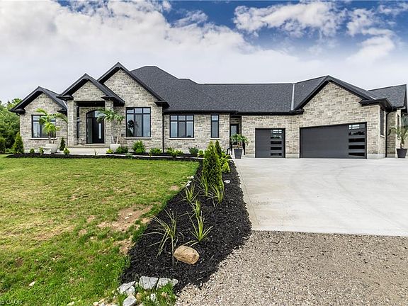 Motivated Seller! Luxurious Custom Bungalow on 1.3 Acres | 6600 sq. ft. | Walkout Basement Step into elegance and energy efficiency with this stunning custom-built bungalow. Perfectly situated on a sprawling 1.3-acre lot with a 270 ft. frontage, this home offers 6600 sq. ft. of living space designed for both comfort and sophistication. Key Features: Grand Foyer & Open Concept Design: Soaring 12 ft. coffered ceilings and triple-pane windows provide an airy, light-filled atmosphere throughout. The seamless flow leads you to a private covered deck, ideal for relaxation or entertaining. Chef-Inspired Kitchen: With quartz countertops, dual sinks, built-in appliances, and a massive island with a separate peninsula, this kitchen is designed for those who love to cook and host. Luxurious Primary Suite: Enjoy direct deck access and a spa-like ensuite featuring a 6'x6' walk-in shower, heated floors with a bench, soaker tub, and double vanities. All Bedrooms with 10 ft Ceilings: Spacious, bright, and designed for ultimate comfort. Fully-Equipped Bathrooms: Heated floors throughout, including the basement rough-ins. Walkout Basement Ready for Your Vision: Already studded with 9' ceilings, large windows, and triple pane glass, French doors and windows opening to the patio. Rough-ins for 2 bedrooms, 3 bathrooms, laundry, and kitchen make this space ideal for future development. Superior Efficiency: Built with an Insulated Concrete Form (ICF) foundation for excellent energy efficiency and soundproofing. Outdoor Paradise: Expansive pool-sized backyard surrounded by mature trees offers complete privacy and natural beauty. Convenience: A triple-wide concrete driveway, second driveway, and a 3-car garage provide ample parking and storage. Additional Features: Air exchanger, central vacuum, on-demand water heater (owned), water softener & treatment system, sump pump, remote garage opener, and more! This home is a must-see to truly appreciate all it has to offer!