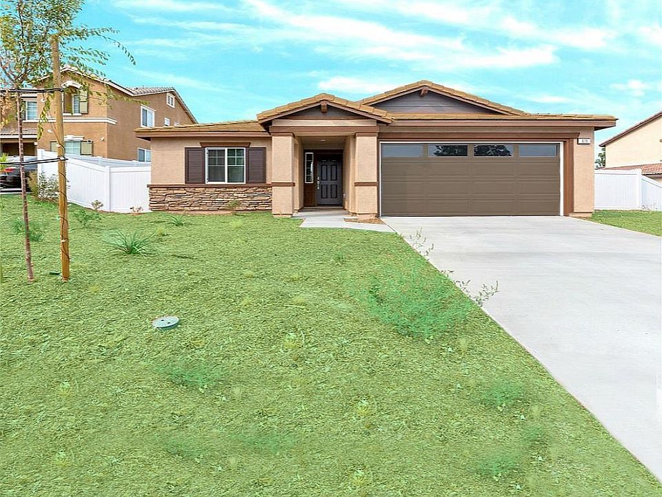 TOUR IT TODAY! Move-in ready! NO WAITING LIST! NEW CONSTRUCTION! in Perris, California, 3 bedrooms, 3 FULL BATHROOMS, plus a den with closet! that could easily be used as a 4th bedroom!!, Sleek smoke stained cabinetry, granite kitchen countertops, spacious combined kitchen/great room with vaulted ceiling, appliances and a built in island. * * * Smart Home features are also included * * * Some amazing amenities this beautiful property boasts are: Skybell smart video doorbell, Qualsys IQ Panel total home connectivity screen, fire sprinkler system, Honeywell Pro-Z Wave Thermostat with wireless capability, Kwikset SmartCode front door locks and Eaton Z-Wave Switch. Also comes with energy efficient tankless water heater, recessed lighting throughout, low E windows, extra large lot ready for pool or shop, primary suite with large walk in closet, shower and dual vanity sink, oversized garage and much much more. is , take a look you won't be disappointed.