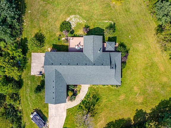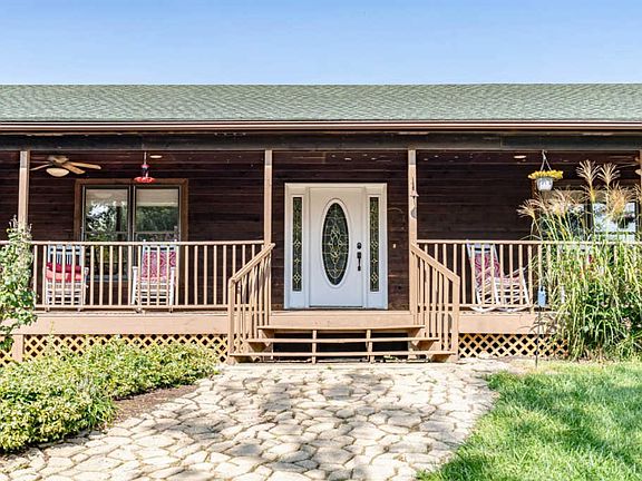 Beautiful ranch home on 10.5 acres! New carpet on the first floor and stainless steel appliances. The main floor features a large wrap around porch. The great room has vaulted ceilings with a stone fireplace and opens to the kitchen area. The master suite has a tray ceiling, 2 large walk-in closets, bathroom with a large tub & shower. It opens to the the covered side porch with beautiful views! There are an additional 4 bedrooms with 1.5 baths. 2 of the rooms could be used as Flex rooms. Laundry room on the first floor. The large open basement features a family room with walk out doors, recreation area, full bath, kitchen, and 2 more additional rooms with closets. It also has a large area for storage. Oversized sized garage perfect for your cars, tractor, and storage. The 10.5 acres features beautiful views, flat land and woods; apple trees and blackberries can also be found. Of course, there is also turkey and deer. Seller to provide a $10,000 allowance at closing for upgrade