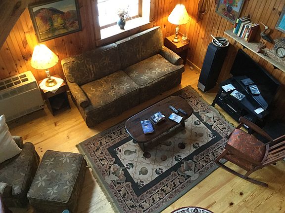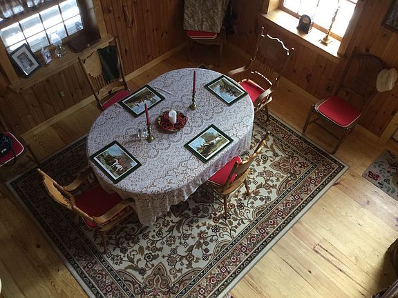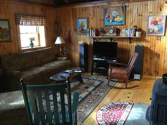 Classic "wilderness" style off-grid log cabin build from timber on property. Renovated in 2016 with new utilities and fixtures. Upgraded solar system. Rear deck with views of Mount Blue and western hills. Large open garage with wood heat and open second floor.
