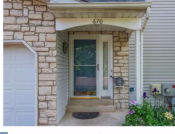No HOA Fees in the Pines of Pennridge! Updated Town Home with New Efficient Natural Gas heat 2015, New Roof 2015 & updates. Conveniently located close to shopping & extensive park system. Eligible for USDA 0% down financing. This home is move in ready & has been freshly painted & New neutral carpet 2016 throughout the 1st & 2nd floors. Cul-de-sac location with garage & 2 car driveway parking. Enter the cute front porch into the foyer with laminate flooring, closet and entrance from garage. Remodeled Power room is stylishly current 2016. This home has an Open floor plan with a large bright living room that opens into a generous sized dining area. Easy entertaining with counter top seating and a U shaped kitchen for 2 cooks. The kitchen has an updated title back splash, under counter lighting, gas cooking & built in microwave. The new 15 Lite French doors in the living room frame the view of a cozy 11x11 paver patio & garden area. Downstairs is a finished family room or play room 18x14 with a wall of deep closets for storage plus an unfinished area for a work shop with lighting & extra electric service. Upstairs the master bedroom is spacious across the front of the home with 3 windows, 2 closets & master bath. There's a convenient 2nd floor laundry area off the large hall. The hall bath is neutral & close to the other 2 bedrooms. Across the back of the home are 2 nice size bedrooms each bright with double windows. This home is move in ready with the peace of mind that the major updates have been done. Fresh paint, New carpets, Efficient natural gas heating, reasonable taxes, NO HOA fees = economical living & all within walking distance to shopping & 5+ miles of walking trails in a park system along the East Branch of the Perkiomen. Come take a look. Open House Sunday 5/29 1-3.