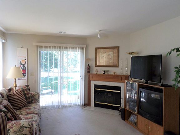 ATTENTION RENTERS! Why rent when you can own this cute and clean main floor condo that is ready for a new owner. Open concept living room and kitchen is great for entertaining. The living room has a fireplace and sliding door to a patio with a view of the green space and tree grove. The kitchen comes with all appliances included and has an island breakfast bar. Spacious master bedroom offers a walk-in closet and 3/4 bath. The 2nd bedroom is nice size and has a walk-in closet. Convenient laundry room includes washer and dryer. The one car garage is right outside your door. Newer roof. Water Heater 3 years old. Great location! Convenient to parks, shopping, and churches. You will enjoy the park-like setting with gazebo, pond, and walking trails.