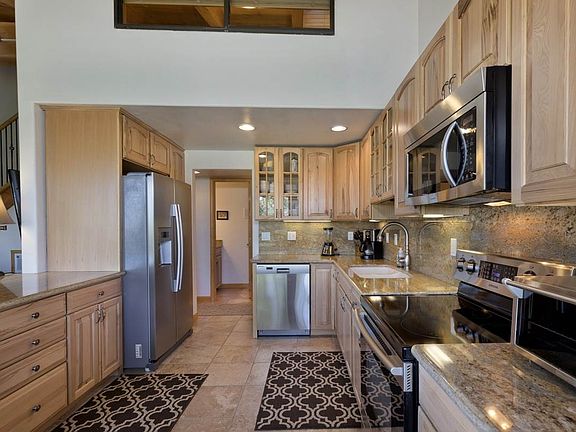 INCREDIBLE REMODEL WITH VIEWS! This complex is SKI IN SKI OUT with this specific unit having been extensively remolded properly with quality finishes including granite slab counters, heated floors in the living room, new kitchen cabinets, new flooring, stainless appliances, washer and dryer, with extended maintenance closet, sanded ceilings, tiled bathroom floors, new doors, tiled balcony, freestanding woodstove, and so much more. Ski to Canyon Lodge or back home from Mammoth Mountain by way of the Timber Ridge ski back trail only 7 away. Because this unit sits on the north side of the complex, it has views north toward Canyon Lodge. This unit also has a garage with room for a storage loft above. Condo has not been on the rental program, only used by the owner and occasional friends. The unit appears to have been a one bedroom + loft converted to a two bedroom with a loft. While permits have been pulled for all work completed, buyer should satisfy themselves with work and permitting.