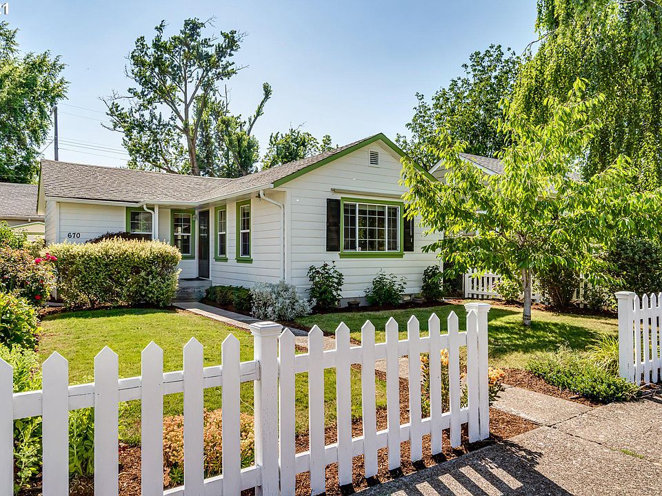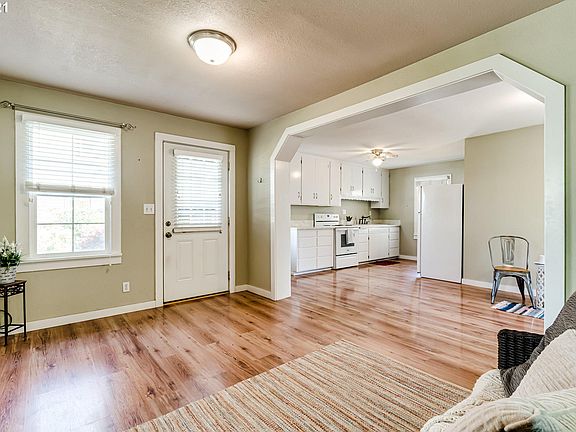 Adorable cottage in the heart of Junction City. Don't miss this sweet home. Primary bedroom has a full bath, 2nd bedroom has a 1/2 bath. Kitchen has been updated and is open to living and dining areas. Bedrooms have a nice separation of space. Indoor laundry area. Back yard has alley access and two sheds. Recent updates include: remodeled full bath, exterior paint, range and kitchen refresh.