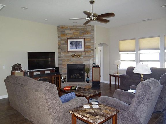 Stunning and better than brand new Stremel built home in Walnut Estates. So many extras including upgraded granite, big kitchen island, gas stove, gas fireplace. Beautiful wood laminate flooring and tile work, central air conditioning, and Hunter Douglas window coverings throughout. It's a great floor plan with an open living area and split bedrooms. Large 3 car garage, an extended east facing covered patio, and beautiful landscaping.