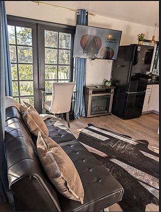 Detached private guest house near the base of Thumb Butte on a private road with it's own large driveway and parking area. Great forest views from the house and deck. Can be rented furnished as shown or unfurnished. Queen bed, huge TV, large deck, stackable washer and dryer in bathroom. Really quiet and beautiful location. High speed internet included. Water, trash and electricity are paid by the tenant.
