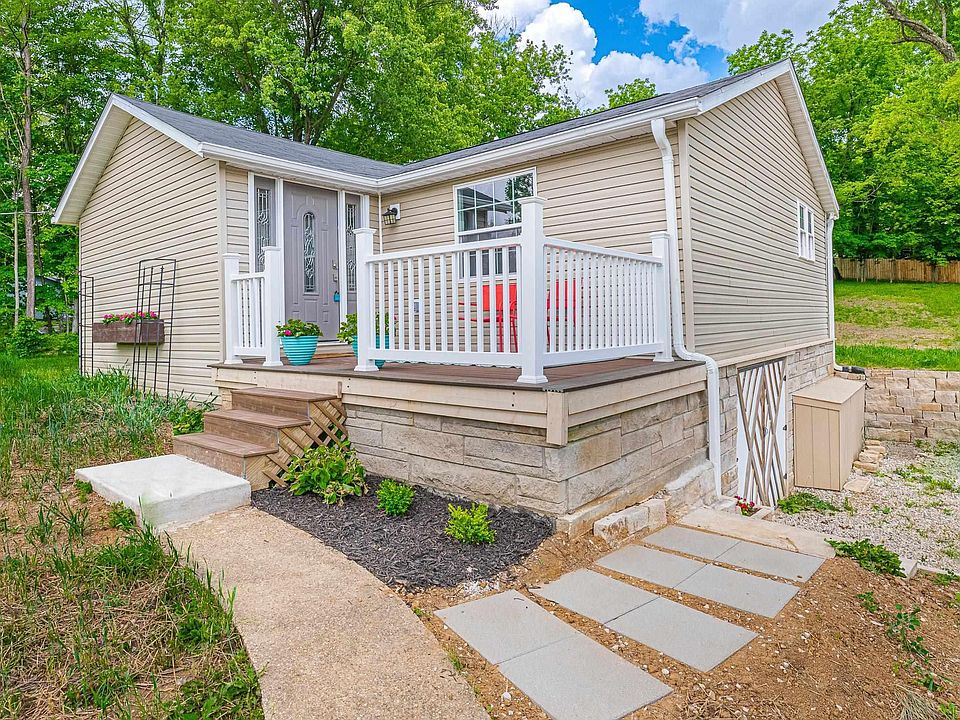 Welcome home to this beautiful, top to bottom turn-key ready home on Bloomington’s far west side. Warm and inviting wood style laminate flooring is durable, comfortable and easy to care for and runs through out. The stand out of this home, after passing through the sparkling glass in the front door, is an amazing open living room/ kitchen area with vaulted ceilings and wood beams! The phenomenal kitchen waits for its first cook to prep on the jumbo island with butcher block counters or to wash up after while admiring the back splash tile. Maybe the kitchen isn’t your space but you’re a grill master? Head to the large back deck with plenty of space for a table and chairs and where the bbq grill can be going while entertaining in the large, partially fenced back yard. Bright bedrooms have closets with custom organization already installed. They are unique in this home because each has its own private bathroom with custom tile work! 3 bedrooms, 3 baths! Looking for more space? The walk out lower level has a large storage work room and a finished room ready for your passions; home theater, home gym, office space, play area? More than enough room! There is also a designated laundry area and a one car garage. Come take a look at 670 N Hartstrait. It is the jewel on top of the hill and a quick drive to shopping and highway 69/37.