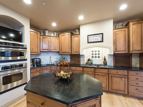 Beautiful home features winding water feature in a quiet mountain top setting! Enjoy the twinkling lights of the city from completely private decks or step inside and cozy up in front of one of three majestic stone fireplaces. Hickory Hardwood Floors, Slate floors, Floor to Ceiling windows, New Granite Counters, Alderwood Cabinetry,Media Sound Throughout the main level, and Two HVAC units. Finished basement would make the perfect Mother-in-Law or Nanny quarters complete with Theater Room, Bed, Bath and Kitchenette Area.