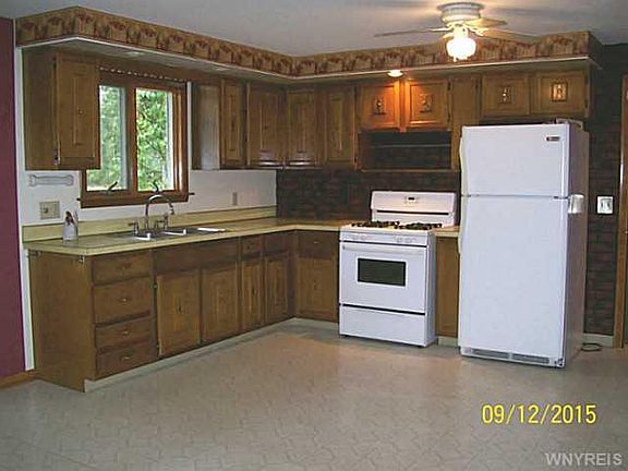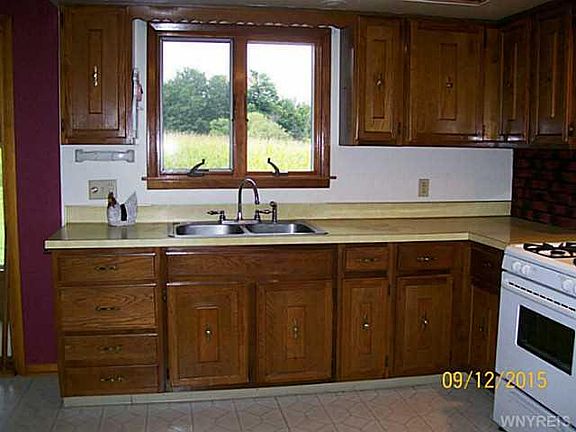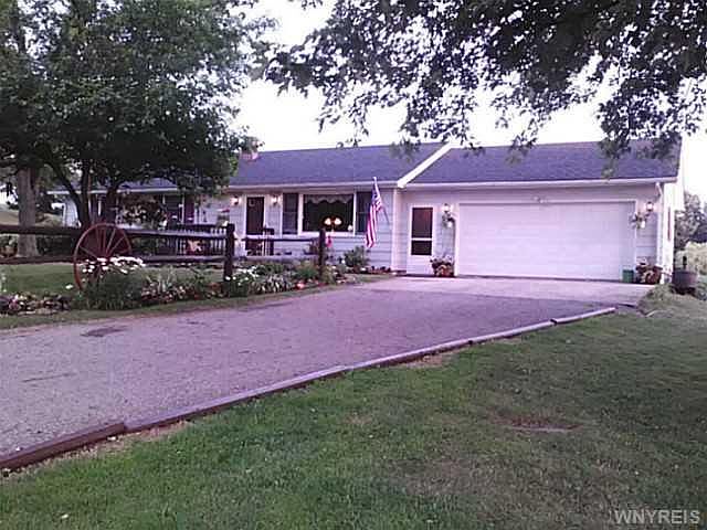 Country Ranch in Strykersville features 3 Bdrms & 1.5 Bath. Large eat-in kitchen & Florida room. 2 car garage, full basement with high ceiling & shed. 1/2 mile to snowmobile trail. View the countryside! Move in condition. Roof about 5 yrs. old. Bring your offer!