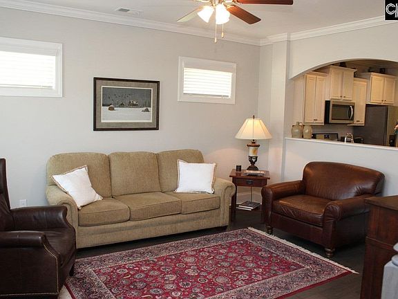 This lovely home is only 2 1/2 years old and shows like a model! The house has many upgrades to include beautiful oak tread stairs, hardwood floors through the living areas, gas range and extra mouldings throughout. There's a large laundry room with extra shelving and a great drop zone for coats, book bags and shoes. The owner's suite is downstairs and features a private bath with double vanity and walk-in shower and two closets. There are two bedrooms with walk-in closets and a bath upstairs. Located at the end of a street, the property backs to a lovely natural area with beautiful trees and azaleas. this is a lake access neighborhood boat ramp, dock and boat storage. ( There is a small addtl fee for storage)