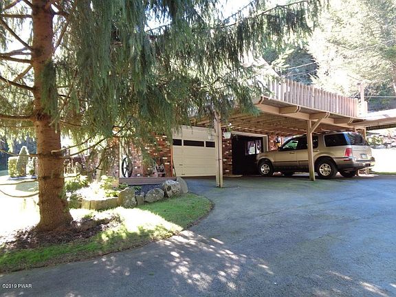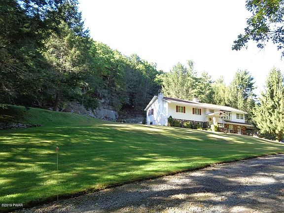 VERY PRIVATE 10+ Acres with roomy split level house w/ attached 2 car garage. Detached workshop building, and parking shed for utility vehicles. Small pond and stream. Lots of yard and lovely rock cliffs in the back. Long private driveway. Covered and uncovered decks. 3 brms, 2 1/2 bath, Kitchen open to dining room. Lvrm with bay window, year round Florida Room. Finished lower level with family room, bar, and entertainment area. In clean and green, very low taxes. Close to Lackawaxen and Delaware Rivers, Greeley Lake ,State Game Land, Lake Wallenpaupack, Ski Big Bear and more! Easy commutable distance to NYC and other metro areas.
