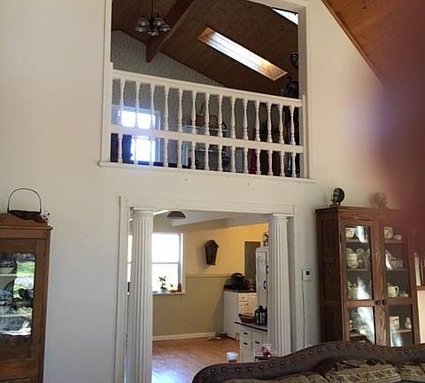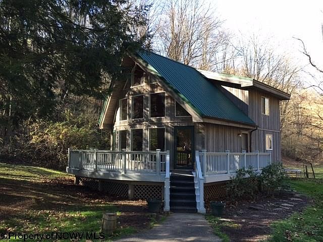 Well maintained private A frame chalet close to Rt 50. Open floor plan with hardwood flooring; loft bedroom with wonderful views; living room with cathedral ceilings, wall of windows. Newer 6 stall horse barn with metal roof. No lockbox due to animals and horses. (See agent remarks for further showing instructions.)