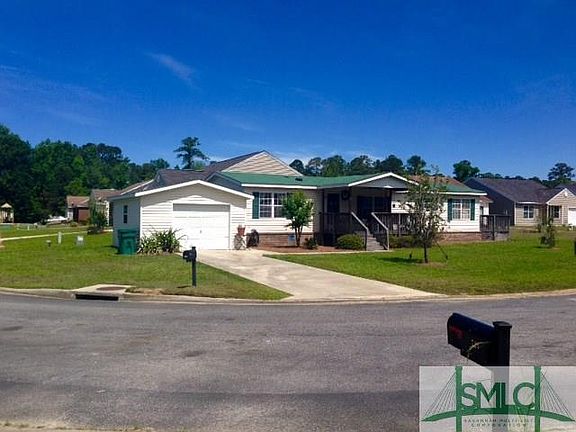 JUST REDUCED $5,900! NOT FOR RENT but why rent when you can be a homeowner? Cozy and cute home with permanent brick foundation, new roof, new wood laminate floors and A/C system 2 yrs old with 2025 warranty. Split bedroom plan, lots of storage and a single detached garage all on a beautiful large corner lot. Plenty of cabinets and counter space in the kitchen. Enjoy your days spending time on your covered porch and cook out on the outdoor living deck off of the breakfast area and kitchen. Great starter or retirement home within walking distance to grocery, restaurants and shopping. Banks, churches, post office, local parks and recreational activities close by plus only 10 minutes to a public boat ramp at King's Ferry on the Ogeechee River. Popular Richmond Hill Schools and close proximity to Fort Stewart. I-95 is 3 minutes away and airport in Pooler a short 15 min drive. Easy access to Savannah with a 20-30 min drive. Motivated seller says bring offers!