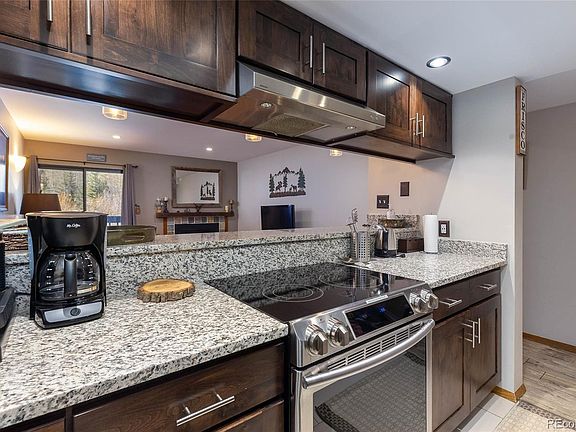 This turn-key, remodeled, fully furnished condo is the perfect base camp for all your Colorado adventures. It offers a private exterior entrance, spacious bedroom, remodeled kitchen w/newer stainless steel appliances, newer cabinetry & granite countertops. Plenty of storage. Hardwood flooring throughout. Beautifully remodeled bathroom. Wood burning fireplace. Balcony with ski storage & a covered reserved garage parking space. Additional uncovered parking available in the main lot if needed. Located in Charming Frisco at the Mountain Side Condos bordering national forest, enjoy a heated year round indoor pool, 4 hot tubs (3 exterior/1 interior), sauna, steam shower, tennis courts, work-out area, indoor sport courts, BBQ grills and coin operated laundry room. The clubhouse also offers free wi-fi, lounge area w/fireplace & meeting room. Only blocks to popular Main Street for dining, shopping, cafes, bars & more. Clubhouse is amazing, newly upgraded and remodeled, great space for larger gatherings. Miles and miles of biking paths just out your door. In the summer enjoy Lake Dillon just .6 miles away for paddle boarding, boating, fishing etc. The Frisco Adventure Park can't be missed for all types of outdoor adventure including a tubing hill & snow shoeing. Only 7 miles to Copper Mountain Ski resort & centrally located near several other world class ski resorts. Only opportunity to own in Frisco under $600k at the moment. Amazing opportunity. HOA allows for short term rentals. Buyer must check with Frisco STR department to determine if licenses are available. 1% transfer fee applies to all transactions.