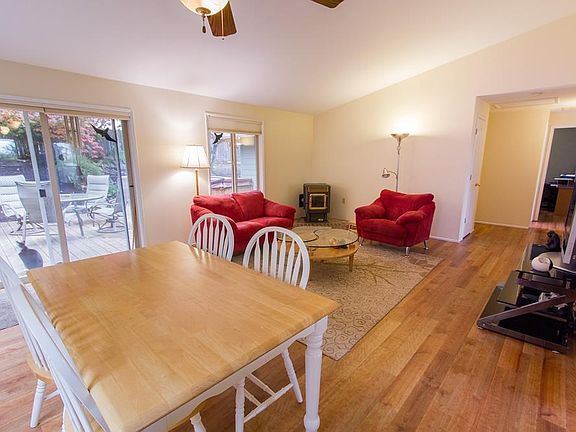 Sweet one level home w/ vaulted ceilings, large fenced yard, central AC & hot tub. Large "country" kitchen with informal eating area & pass through counter to formal dining room. Lovely living room w/ high-end laminate floors, vaulted ceilings, pellet stove & views to side & back yard. Master bedroom w/ private door to hot tub & back yard. Large double garage. Just minutes to OSU & shopping. Pride of ownership. Newer roof and cement composite siding.