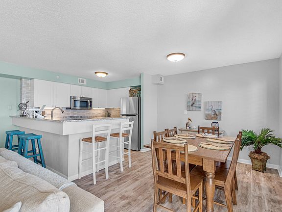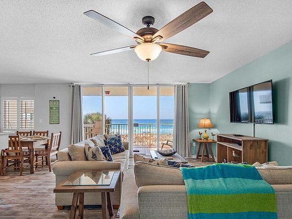 Gulf front corner unit at Dune Pointe, with views of the Gulf of Mexico from the third floor balcony. The condo layout has more Gulf frontage than many other condos in the area, spanning the living room and dining room area, rather than just the living room. Besides the two bedrooms, the living room is large enough to accommodate comfortable sleeping arrangements for extra guests. The primary bathroom is equipped with a jetted tub. The luxury vinyl flooring throughout the condo was installed in the spring of 2023. The exterior of the building was updated in 2024. Parking lot and swimming pool are gated and code-accessible. The building has passed the milestone inspection. The building is located on the quiet strip of Okaloosa Island, but only a short drive to Destin.