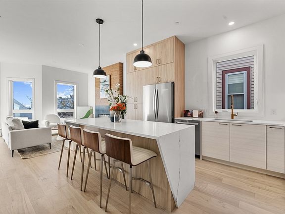 Welcome to 'The Residences on Saratoga' in the heart of East Boston. These stunning, ground-up, new-construction condos feature an expansive primary-suite, designer bathrooms, and DIRECT private outdoor space. Sophistication and modern details are abound: expansive windows and 10-foot ceilings flood the interior with natural light, illuminating the high-end finishes and modern touches. The spacious open floor-plan seamlessly integrates through a living room w/ fireplace, dining area, and gourmet kitchen; ideal for both relaxing nights or entertaining guests. A kitchen outfitted with stainless steel appliances, 'Dell Anno' white oak cabinets, and luxurious quartz counters are all made to impress. Retreat to the oversized primary boasting an en-suite bathroom, full-height windows, and a huge walk-in closet. A large second bedroom provides versatility and includes full closet space as well. Steps to the Wood Island T, boutique 'Eastie' dining, and an easy commute to the city.