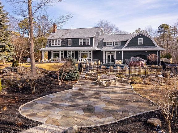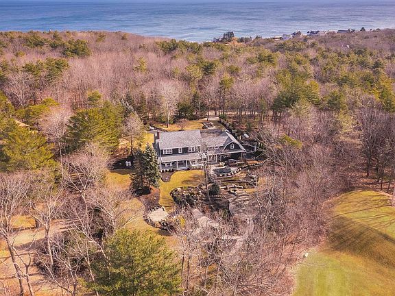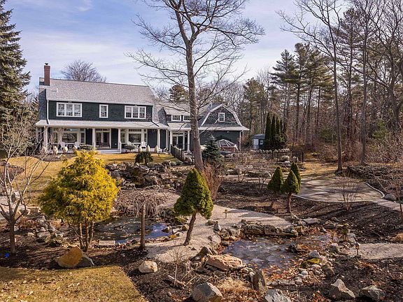Complete 'coastal elegance' shines on multiple levels in this tastefully sophisticated shingled Dutch Colonial home that abuts the Cape Neddick Country Club overlooking the 6th hole tee box. The home's grounds have been painstakingly curated and manicured to create an intriguing outdoor environment with meandering footpaths. Hardscape appointments include a waterfall and pond highlighted by dramatic up-lighting on the trees that are the perfect backdrop for the heated saline Soake plunge pool, stone patio and rear porch. Inside, the open concept main floor offers a stunning, recently redesigned, gourmet kitchen which features twin-islands with white quartz counters, ss appliances and a farmer's sink. Overlooking the backyard, is the den with banquette seating and stunning built-ins with glass paned cabinets, wet bar area, beverage cooler plus a refrigerator drawer and freezer drawer. The cozy living area is warmed by a stone-faced gas fireplace flanked by built-in shelving and the room overlooks the formal dining area. Upstairs, you'll find the primary bedroom with multiple closets and a newly renovated bath that features an impressive soaking tub, double vanities, and tiled shower. The two guest bedrooms and a shared bath are also on this level. Accessed through French doors from the primary bedroom or private stairs from the heated two car garage is an in-home office plus a family room w/ full bath. Finished lower level with bath and study.
