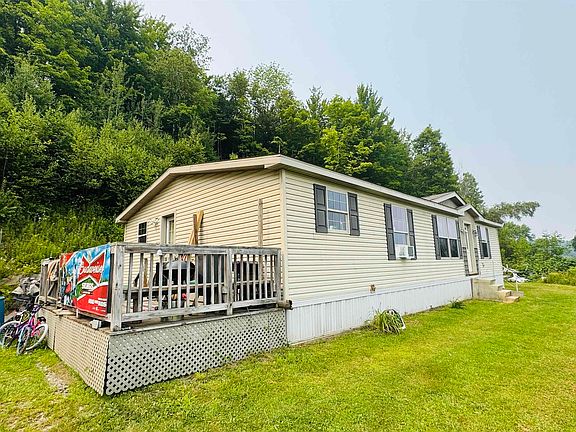 In Irasburg Vermont you will find this 2014 home that sits on 10.80 acres and features long range views. This 3 bedroom, 2 bath home would be perfect for any situation whether it be a first time home buyer or a getaway. VAST and VASA trails are assessable from here. The home sits on a concrete slab with tiedowns so most financing should be acceptable. Irasburg has no zoning so to add another structure is as easy as just building one. There is another outbuilding that conveys that has a water hookup and electric. Don't miss out on this property!