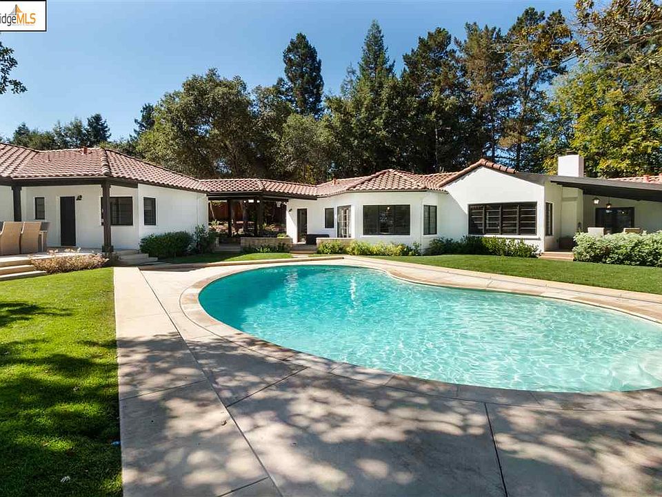 This 1941 Lafayette estate originally served as the cornerstone for what is now known as Sky Hy Ranch. This custom, Spanish-style residence was originally built for Federal Judge O.D. Hamlin. This historical property is truly unique for the area and features classical architectural design rarely found in Contra Costa County. The main residence is comprised of a 3 bedroom + executive study/3 bath, 3151 sq. ft. one story main house plus an attached 1 bedroom/1 bath, 292 sq. ft. guest house and a 2 bedroom/.5 bath, 375 sq. ft. cabana, all connected by covered esplanade. The rare, extremely large, flat lot on the top of a hill boasts extensive gardens and a pool as well as hilltop views of Lafayette.Interior features of the main home include a grand living room with open-beamed ceiling and a stunning floor to ceiling progressively stacked brick fireplace, beautiful dark hardwood floors and amazing natural light through French doors and picture windows. Nearby, the octagonal executive library has a fireplace, built-in shelving and desk, and true wet bar. The expansive formal dining room attaches to a spacious kitchen, which includes a breakfast nook and walk-in pantry. The master retreat encompasses a walk-in closet, along with a separate changing room and closet, and bath with stall shower and tub. The two additional, large bedrooms each feature en suite full bathrooms, one with attached sitting room. Located down a large private driveway, the property is quiet and set apart from neighbors. Exterior highlights include a covered dining patio with fireplace, large entertaining deck off kitchen with bench seating, meandering paths through enchanting gardens, mature Redwood and Magnolia trees, level lawn and pool. A Spanish tile roof complements the impressive exterior. In addition, there is an oversized 3-car garage with two attached storage/work rooms. Sky Hy Ranch is a private gated community of 29 homes surrounded by rolling hills and grazing cattle. The neighborhood is known for its pristine setting, picture-perfect views, community greenbelt and mini-park. Conveniently located minutes from both downtown Lafayette and Rheem, it has easy access to shops, restaurants and commute routes, and feeds to award-winning Lafayette Elementary School, Stanley Middle School and Campolindo High School. We encourage you to explore all that this one-of-a-kind home, property and neighborhood have to offer! Neighborhood Description Sky Hy Ranch is a private gated community of 29 homes surrounded by rolling hills and grazing cattle. The neighborhood is known for its pristine setting, picture-perfect views, community greenbelt and mini-park. Conveniently located minutes from both downtown Lafayette and Rheem, it has easy access to shops, restaurants and commute routes, and feeds to award-winning Lafayette Elementary School, Stanley Middle School and Campolindo High School.