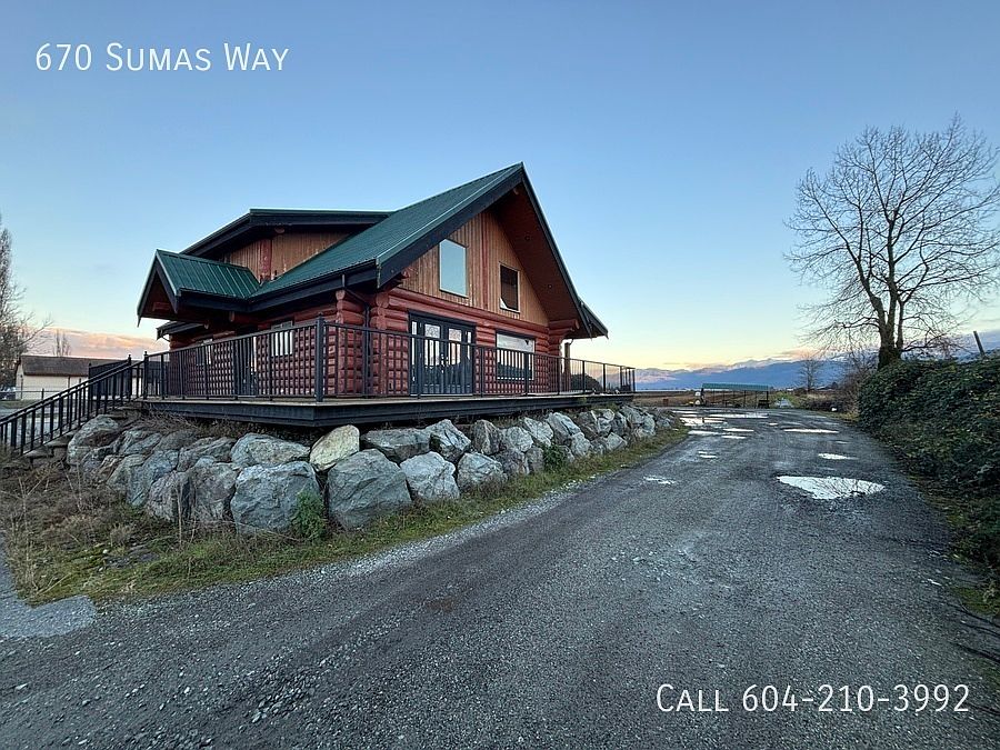 One Year Lease Security Deposit: Half Month Rent Pet Deposit: Half Month Rent Got log home fever? Ace has a log home for you! This unique property boasts a large wrap around deck with a second deck on the upper floor. Lots of open parking, perfect for RV, boat, and all your other recreational vehicles. Great location for cross-border shopping, and Costco. **This property also has an option to lease the shop for an additional cost.** to book a viewing. Reference the address: "670 Sumas Way"