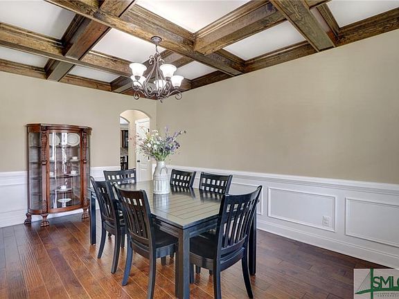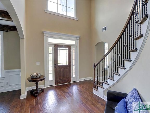 This Spectacular 6 Bedroom Home is Perfect for Family and Friends. Enjoy Entertaining and Sharing Your Beautifully Appointed Home Located in One of Pooler's Most Prestigious Gated Communities. Full of Custom Upgrades, Including Amazing Foyer Entry with Elegant Curved Stairway Leading to Formal Dining with Exposed Wood Coffered Ceilings and Open Family Room with Fireplace, Built-ins and Tons of Light. The Gourmet Kitchen Boasts Custom Cabinetry, Granite Tops, Glass Tile Backsplash and Stainless Steele Appliances. Executive Level Trim, Moldings and Hand Scraped Hardwoods Throughout the Main Living Area. Guest Suite on First Floor with Remaining Bedrooms and Large Bonus Upstairs Including Huge Master Suite with Corner Fireplace, His and Her Closets and Dual Vanities Separated by a Large Soaking Tub and Oversized Shower. Spray Foam Insulation Keeps Avg Electric Bill at ONLY $170/ month. Situated on Well Maintained, Fenced Corner Lot- This Home Has it ALL!!