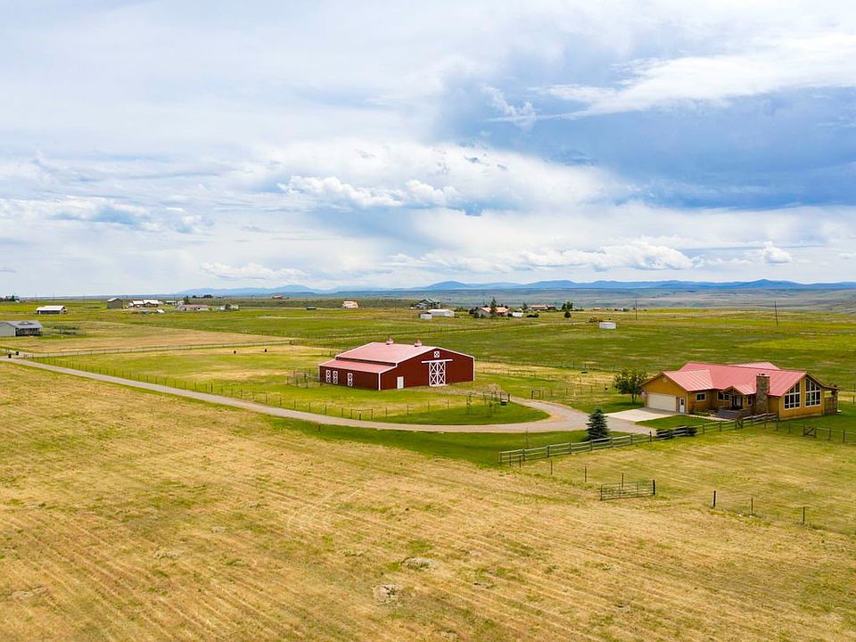 Stunning custom home minutes from town on a 5 acre lot! Additional acreage is available. Home is approx. 4,568 SqFt w/the main floor finished & the partially finished basement to make your own! Features include 2 bdrms, 2 1/2 baths, open living areas w/high vaulted ceilings, Moss Rock Fireplace, large windows in living room to enjoy the sunsets, kitchen w/breakfast bar, stainless appliances, gas stovetop & prep sink. The bright master suite has full bath, jetted tub, walk-in tile shower, walk-in closet, french doors to covered patio done by Rocky Mountain Hardscapes. The partially basement has a full bath, laundry & space for a large family rm plumbed for wet bar, 2 additional bdrms w/the egress windows already installed! Attached 2 car garage PLUS 72X64 barn w/tack room & corral doors.
