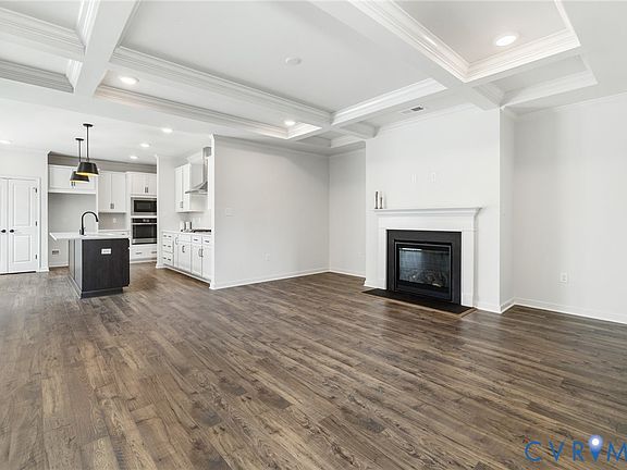 - Description: Coffered Ceiling, Revwood, Fireplace